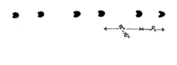 Essas pegadas, que mediam 10 centímetros de comprimento por 7 centímetros de largura, eram estranhas em muitos aspectos. O que surpreendeu as inúmeras testemunhas e despertou a atenção do público foi a sua regularidade, a sua clareza e, sobretudo, o facto de estarem todas perfeitamente alinhadas. As pegadas de animais bípedes e quadrúpedes são bem características. Como animais possuem simetria bilateral sempre existem dois ou quatro pares de patas. Aqui vemos a pegada humana, evidenciando o pé direito e o pé esquerdo.