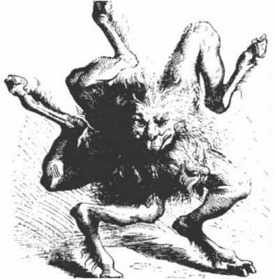 O escritor Charles Fort, em sua obra O Livro dos Danados, capítulo 28, relata que as pegadas de Devonshire alternavam-se por intervalos grandes, mas regulares, que pareciam ser marcas da ponta de um bastão e inclusive surgiram desenhos, baseados na imaginação livre, de uma suposta criatura, que vemos aqui.