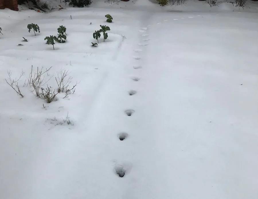 Na manhã em que elas foram observadas, a neve apresentava pegadas frescas de gatos, cães, coelhos, pássaros e homens, nitidamente definidos. Tão definidos que a fenda do meio de cada casco era nitidamente visível.