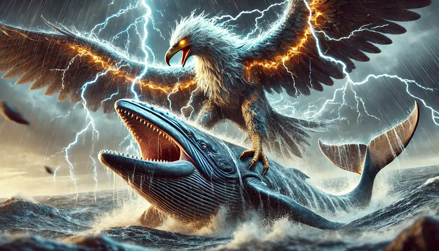 Essa batalha eterna entre o ser aéreo e o monstro aquático representa o equilíbrio entre céu e terra, ordem e caos, mas alguns pesquisadores enxergam nela uma metáfora tecnológica: luz contra escuridão, energia contra matéria, talvez até um conflito entre diferentes tipos de “visitantes”.