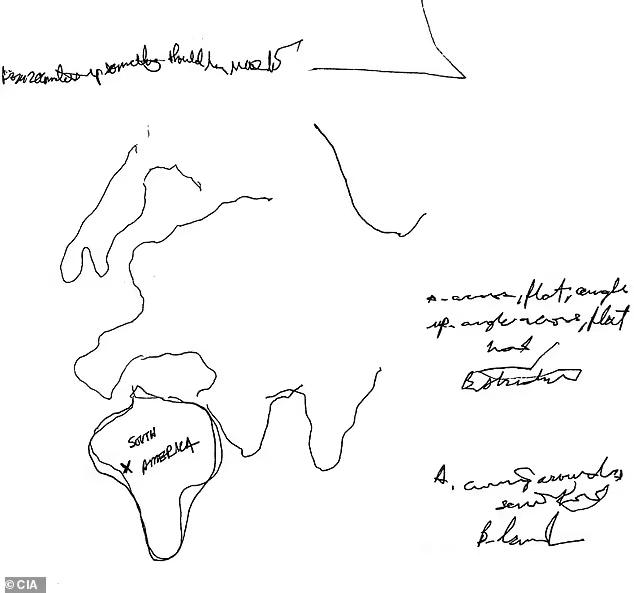 O documento de 12 páginas inclui vários desenhos que se acredita representarem as localizações dessas bases extraterrestres — um esboço parece assemelhar-se a uma montanha rochosa.