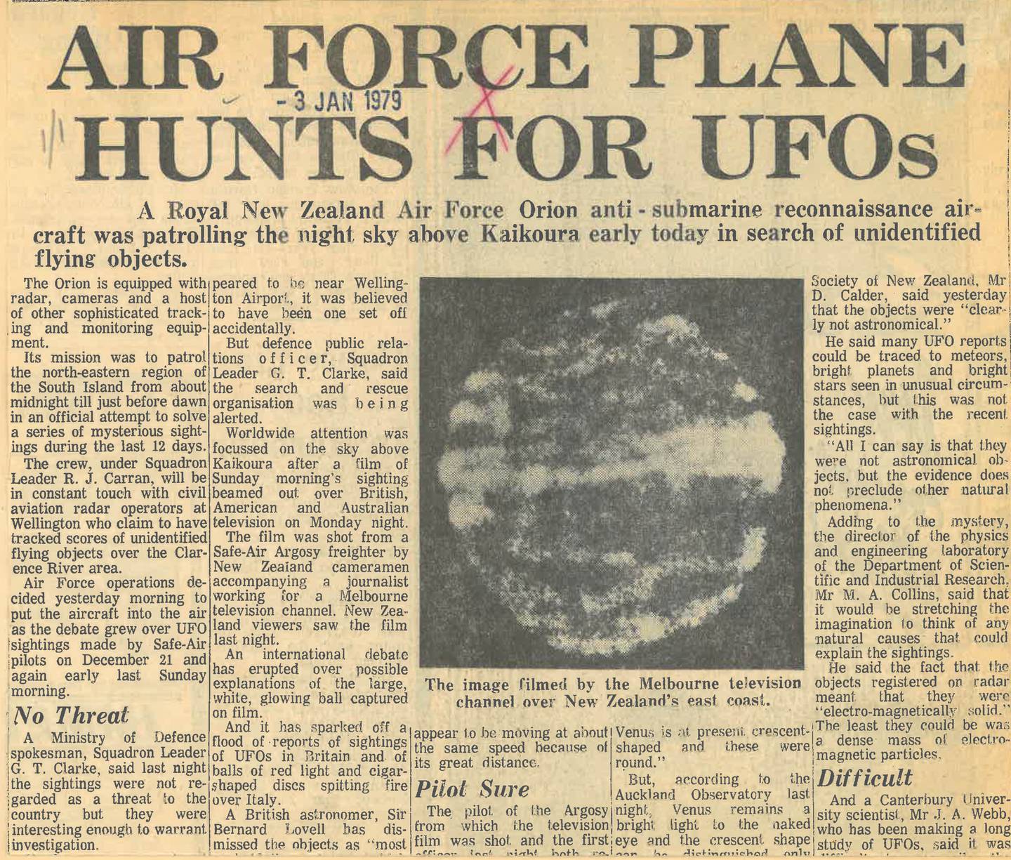 Na noite de 21 para 22 de dezembro de 1978, controladores de tráfego aéreo da Nova Zelândia captaram alvos estranhos na tela de radar, precisamente sobre a região de Kaikoura.