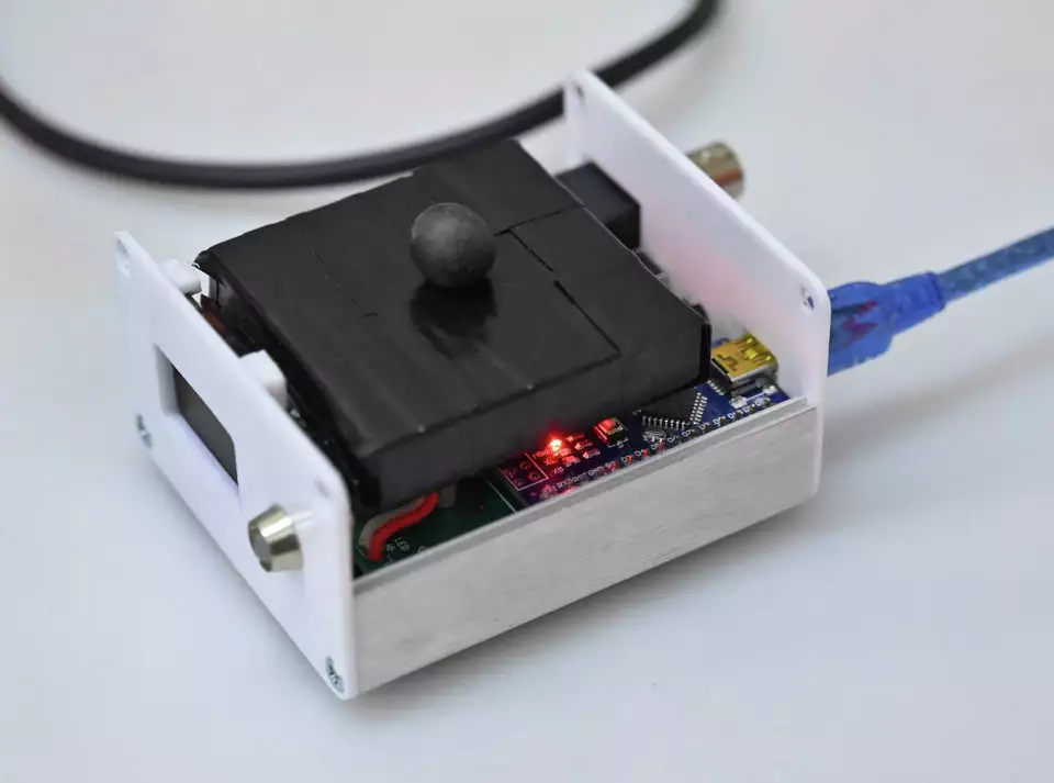 Um relógio cósmico, que detecta radiação, é visto em um laboratório na Universidade de Albany.