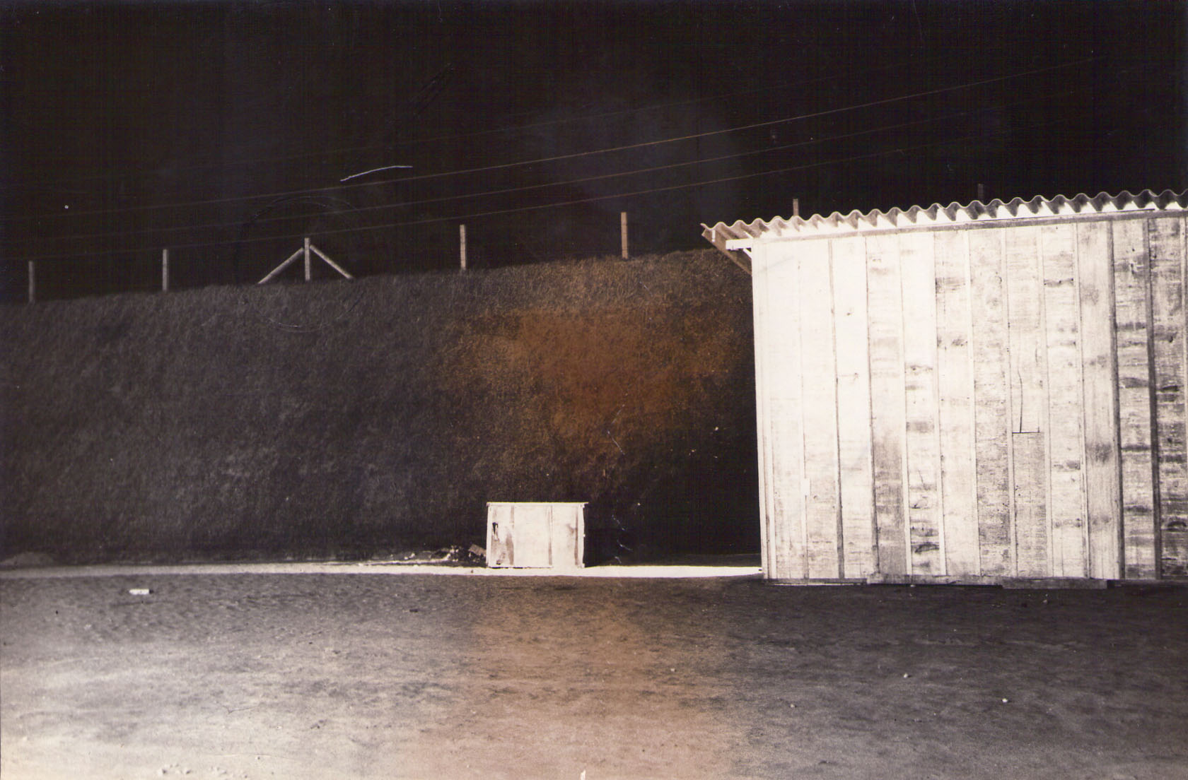 Foi quando notou, a aproximadamente 70m, no barranco, atrás do escritório (veja a “tenenge” (escritório) em D na foto 27 e croquis 28 executado pelo Sr. Daildo), um vulto de homem iluminado pelas lâmpadas da vizinhança (veja em “c” no croquis nº 28 e na foto nº 30).