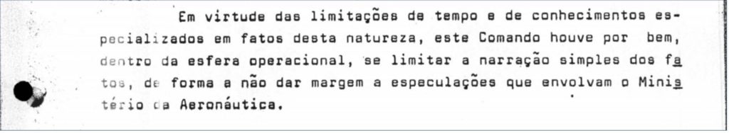 Em outras palavras, o documento informa que por não ter conhecimento sobre fatos ufológicos e tempo para um estudo mais aprofundado sob esta ótica, prefere ater-se à parte técnica para evitar constrangimentos.