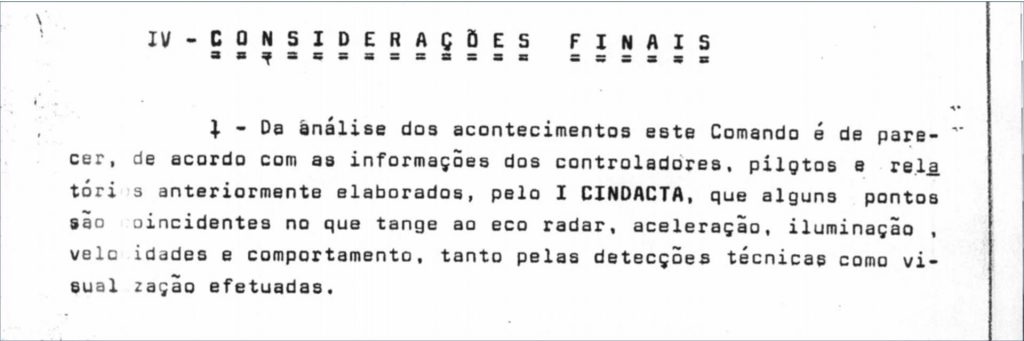 O quarto item, intitulado Considerações Finais, é sem dúvidas o mais interessante, pois apresenta as constatações da Força Aérea Brasileira, dispostas em quatro conclusões.
