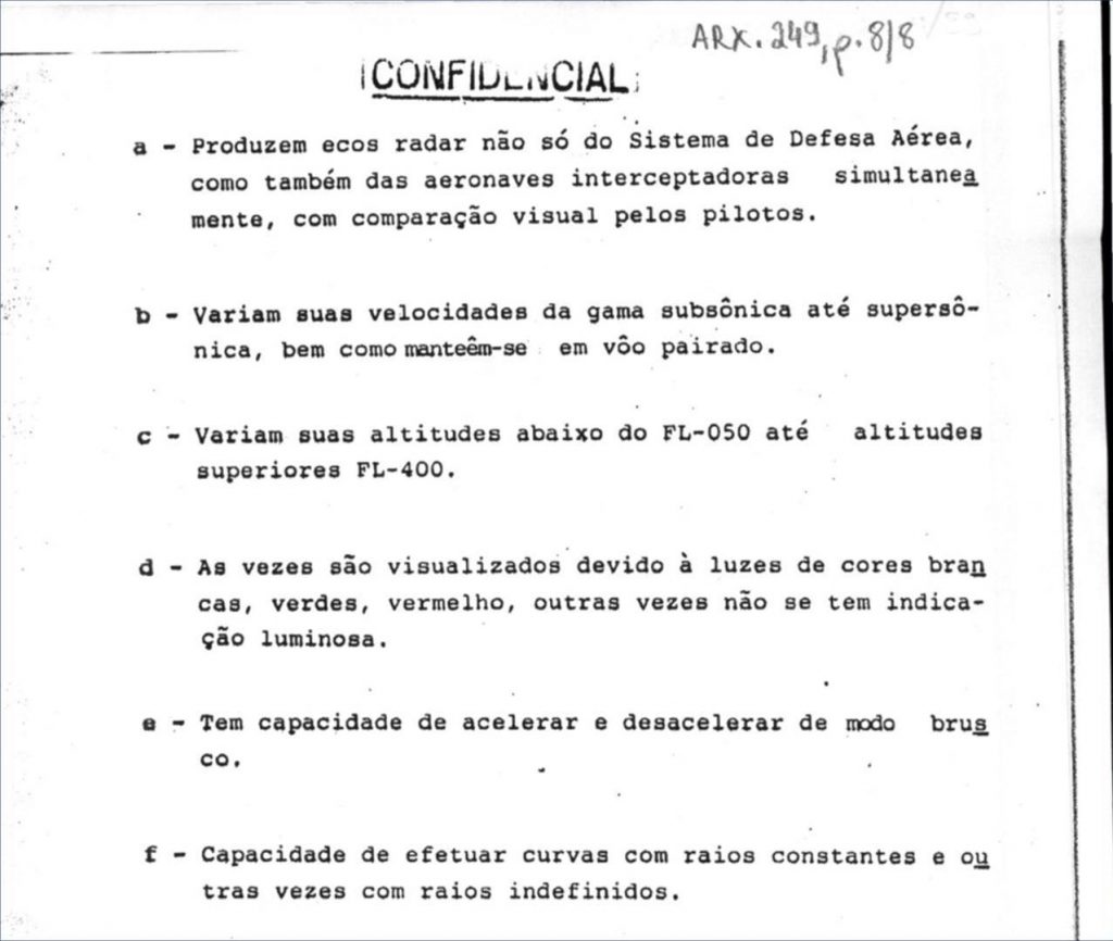 Cabe aqui um voto de louvor aos nossos militares, que diante de um fato desconhecido, frente à uma potência muito superior em termos tecnológicos, cumpriu sua missão com louvor e eficiência dentro das devidas condições. Nossos corajosos pilotos entraram em perseguição aérea, prontos para combate, em caso de necessidade, tendo como um possível adversário uma potência desconhecida e muito possivelmente não humana, que em nenhum momento ela se mostrou hostil. Na verdade, seu comportamento foi puramente curioso e analítico.