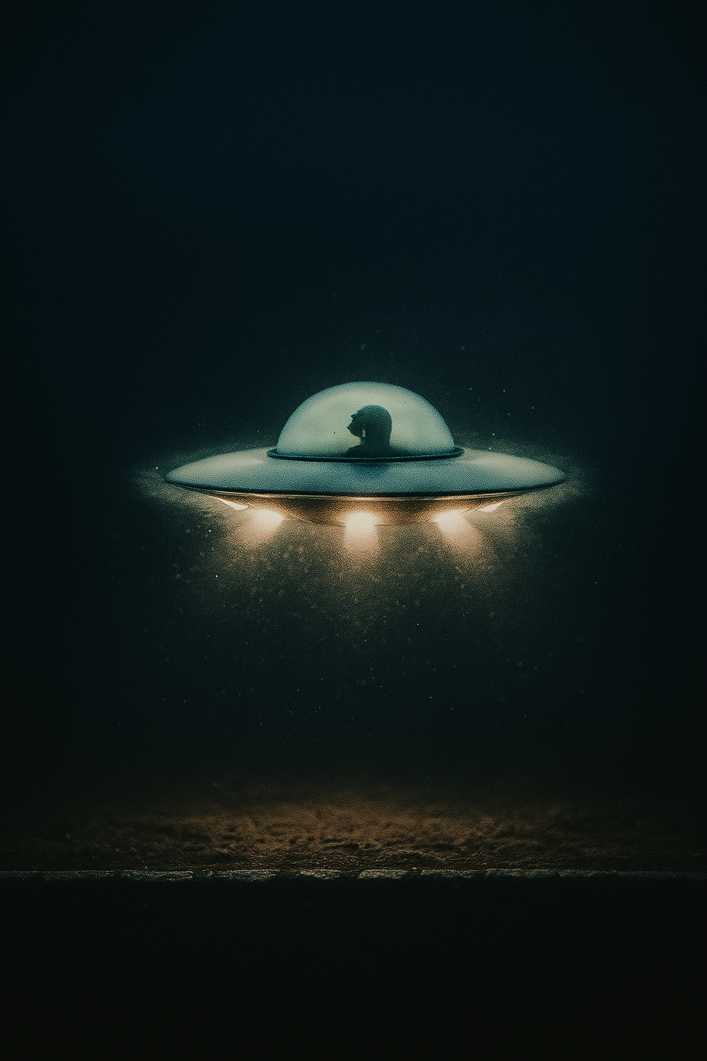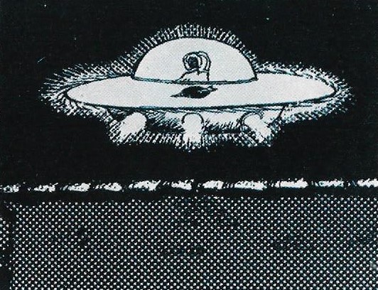 O OVNI subiu verticalmente uns 20 metros, guardando sempre sua posição horizontal. Depois balanceou lentamente, aumentando a intensidade, a estridência do silvo, acelerando vertiginosamente em direção ao céu, deixando atrás de si um rastro luminoso. No fim de alguns segundos não era mais que um pequeno ponto luminoso perdido entre as estrelas.