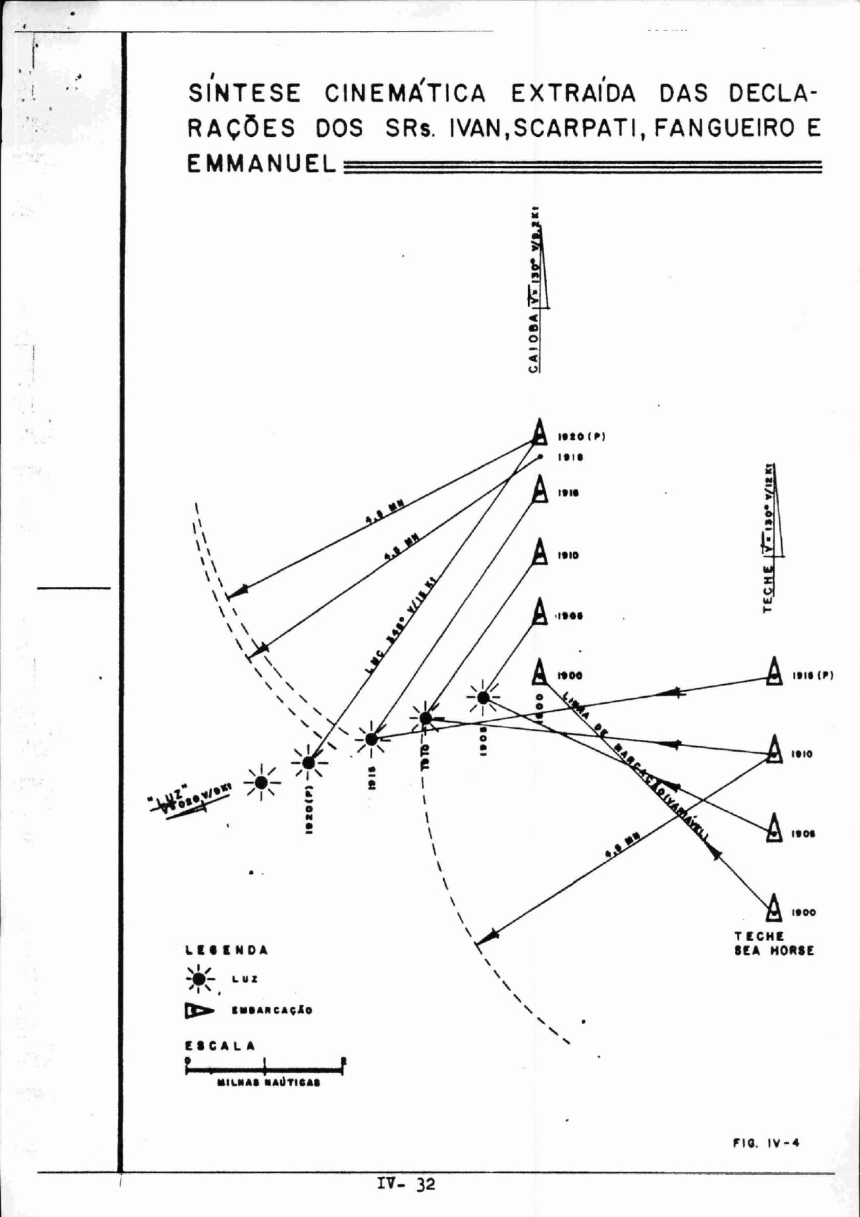 Os barcos seguiram rota 150 (sudeste), quando por volta das 18h50, o imediato Fangueiro e o marinheiro Ivan de Souza Melo que conduziam a embarcação, avistaram uma luz sobre a água. Inicialmente, esta luz era semelhante à um estrela brilhante, e estava à frente da embarcação, 30º à direita.