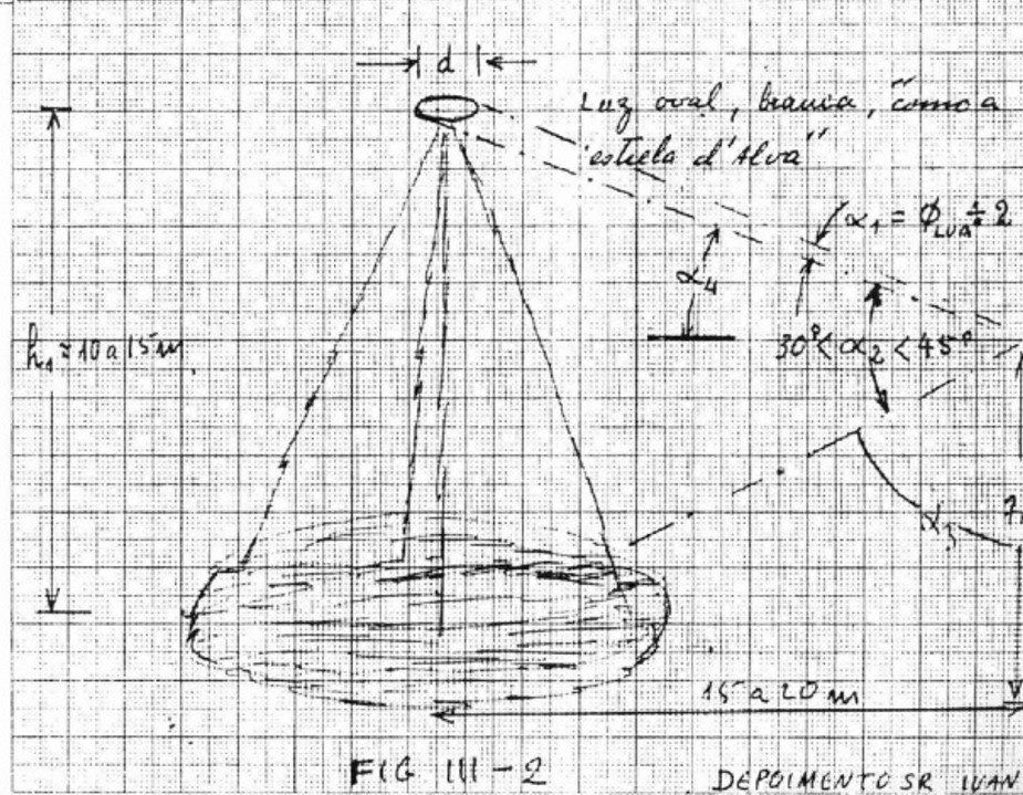 Neste momento, segundo o marinheiro Ivan, o objeto, que era ovalado, apresentava luz de cor branca na sua parte superior e com um tamanho estimado de metade da Lua Cheia.