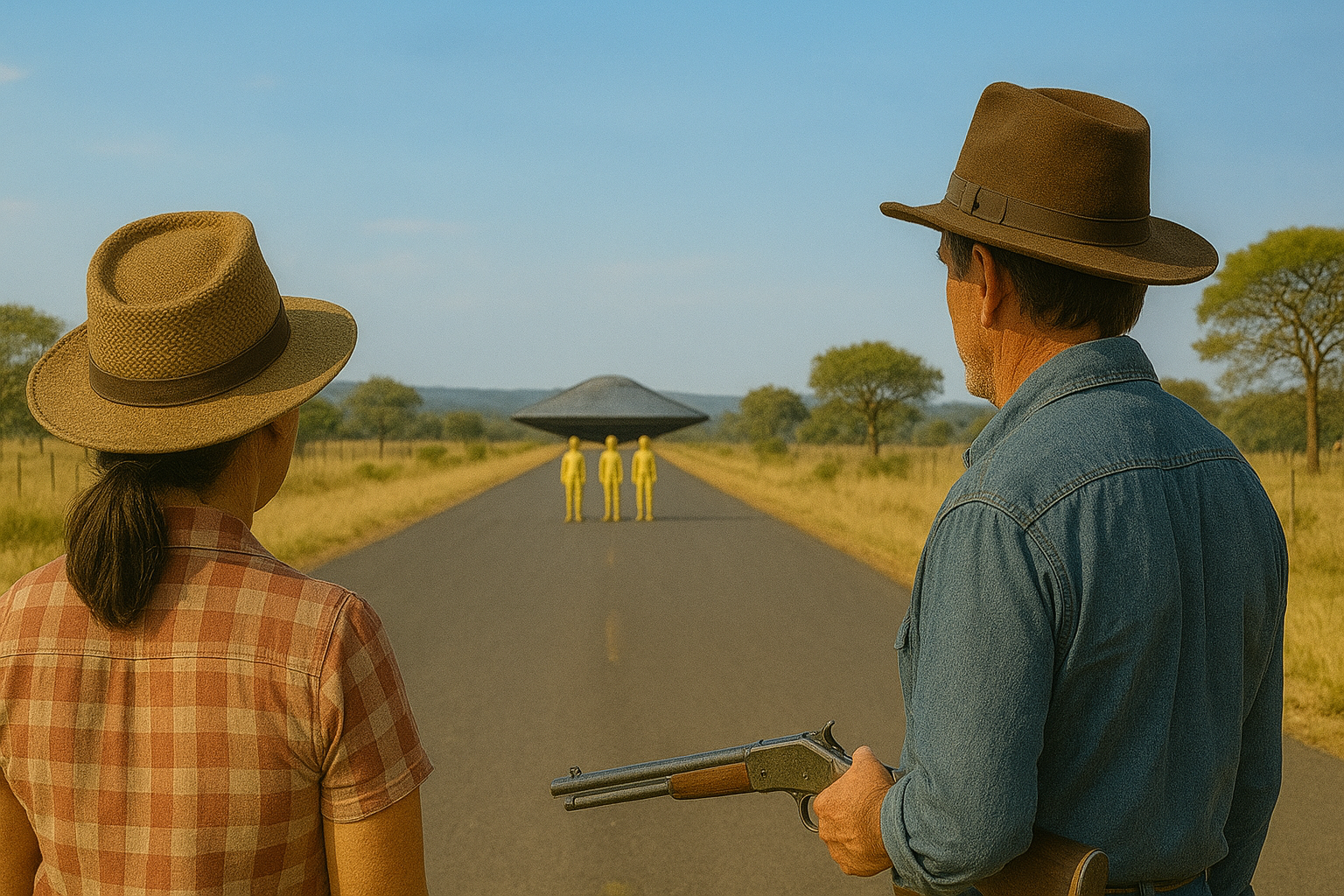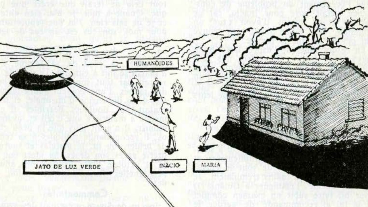 Ao chegar à fazenda, Inácio e Maria de Souza observaram um disco voador pousado no meio da pista de pouso da propriedade e nas proximidades, três tripulantes do aparelho.