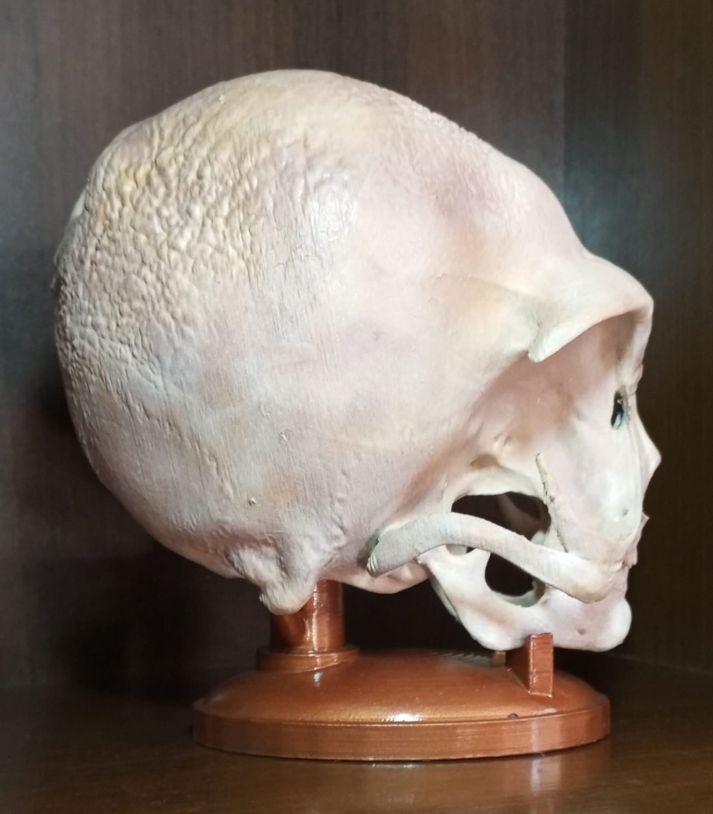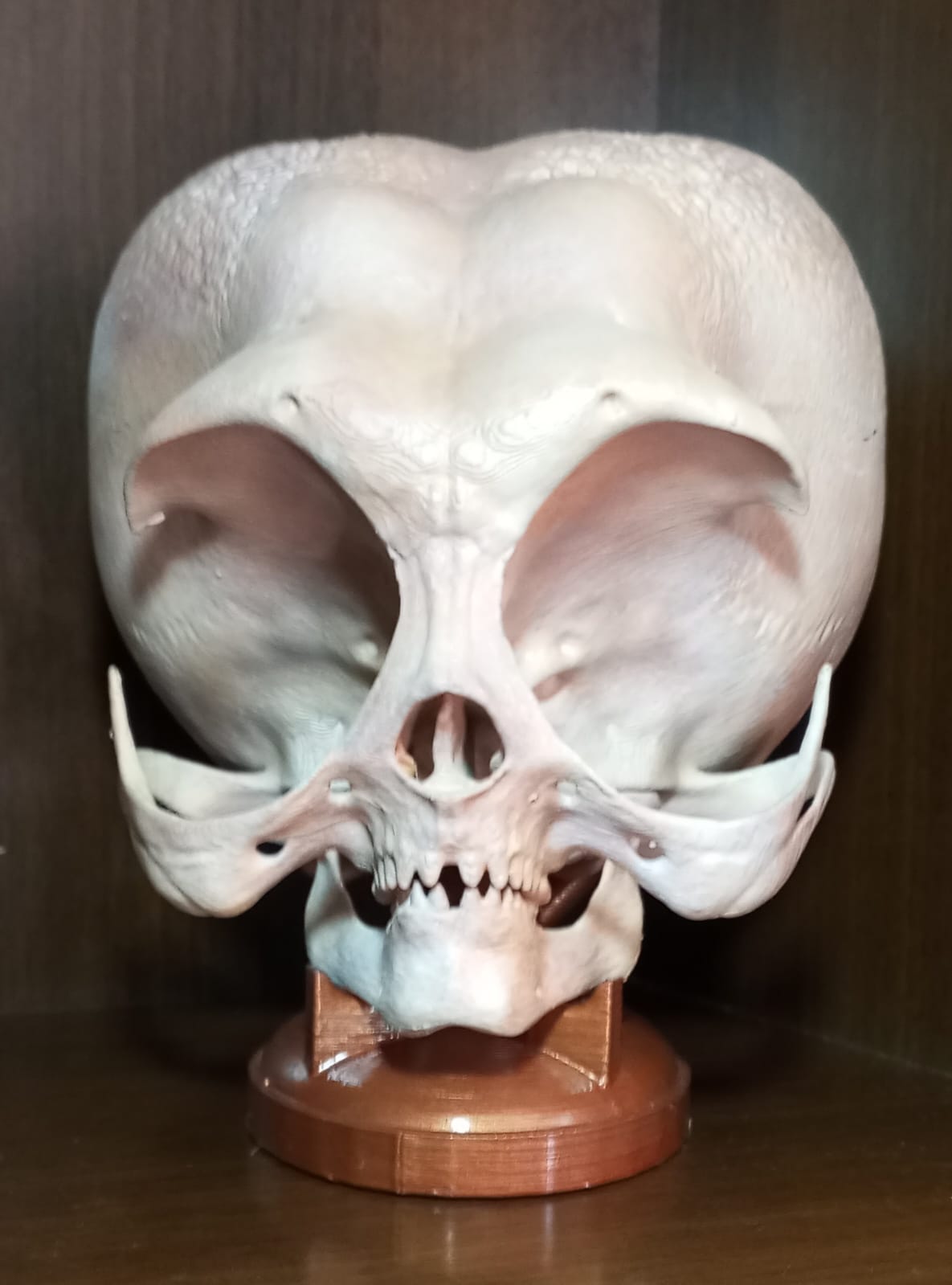 Réplica de caveira de um alienígena gray, feita em filamento PLA. Cor de Osso.