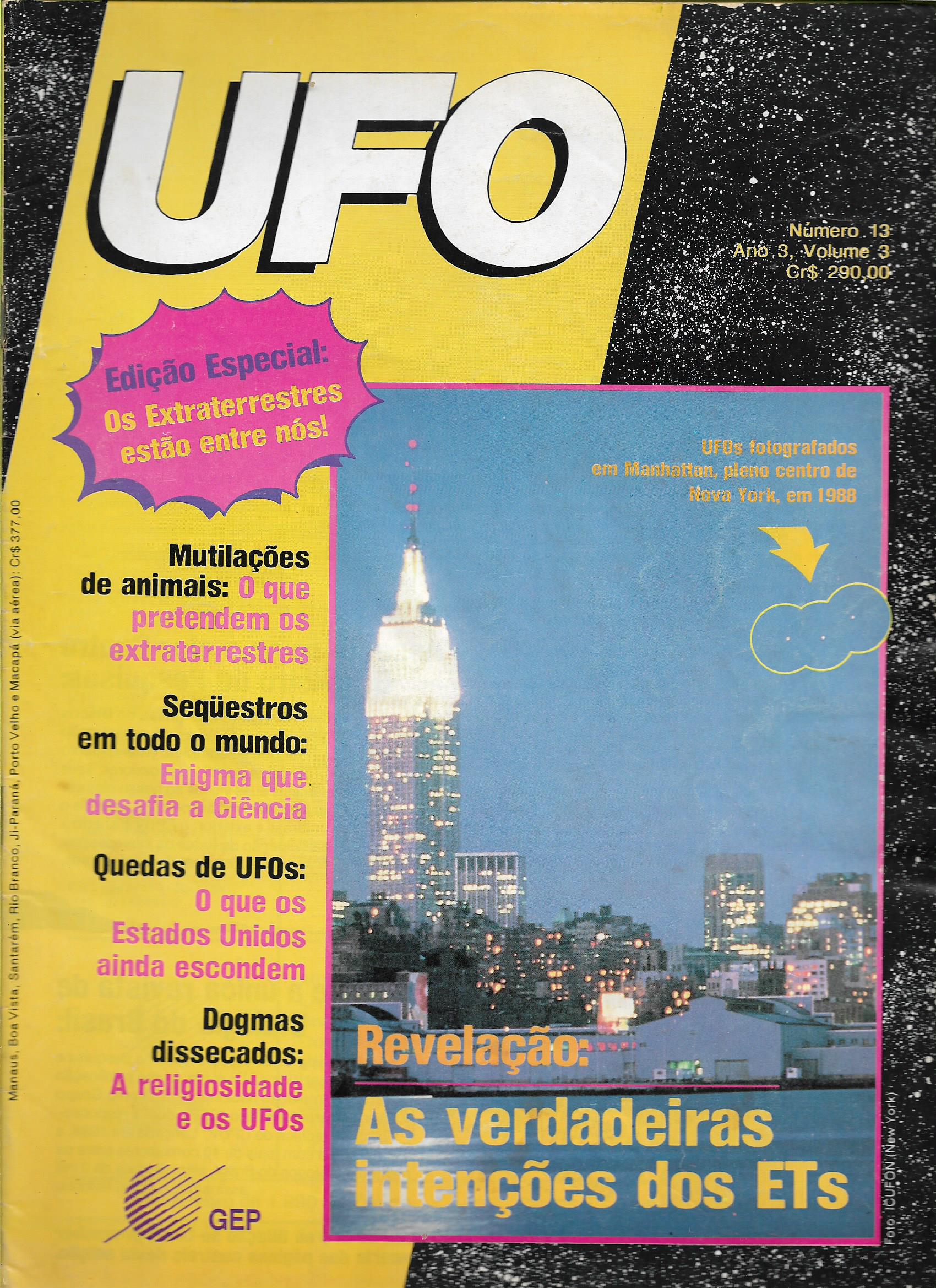A revista UFO é uma produção do Centro Para Pesquisa de Discos Voadores e o Grupo Editorial Paracientífico. Esta é a edição nº 13, lançada em Novembro de 1990.