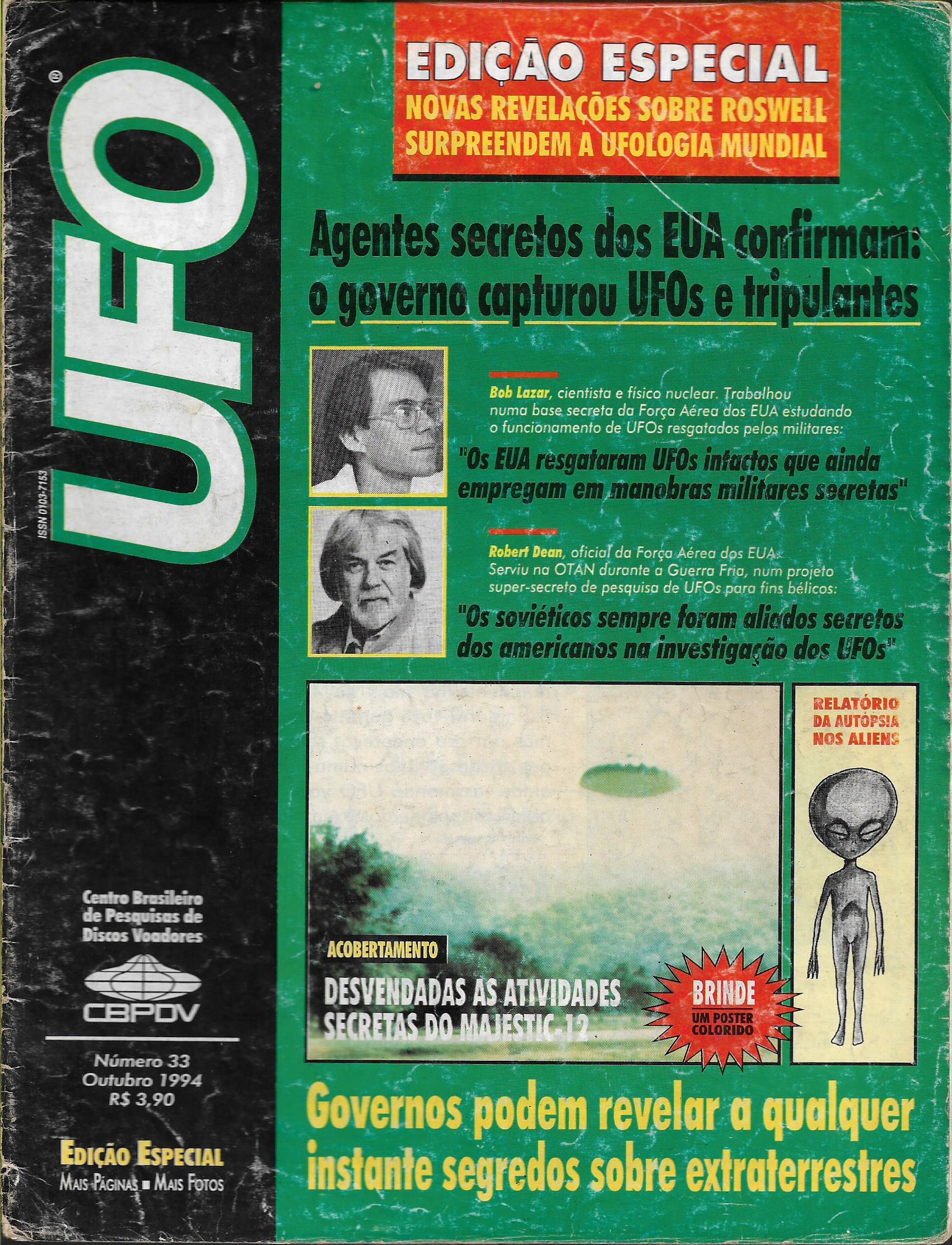 A revista UFO é uma produção do Centro Para Pesquisa de Discos Voadores e o Grupo Editorial Paracientífico. Esta é a edição nº 33, lançada em Julho de 1994.