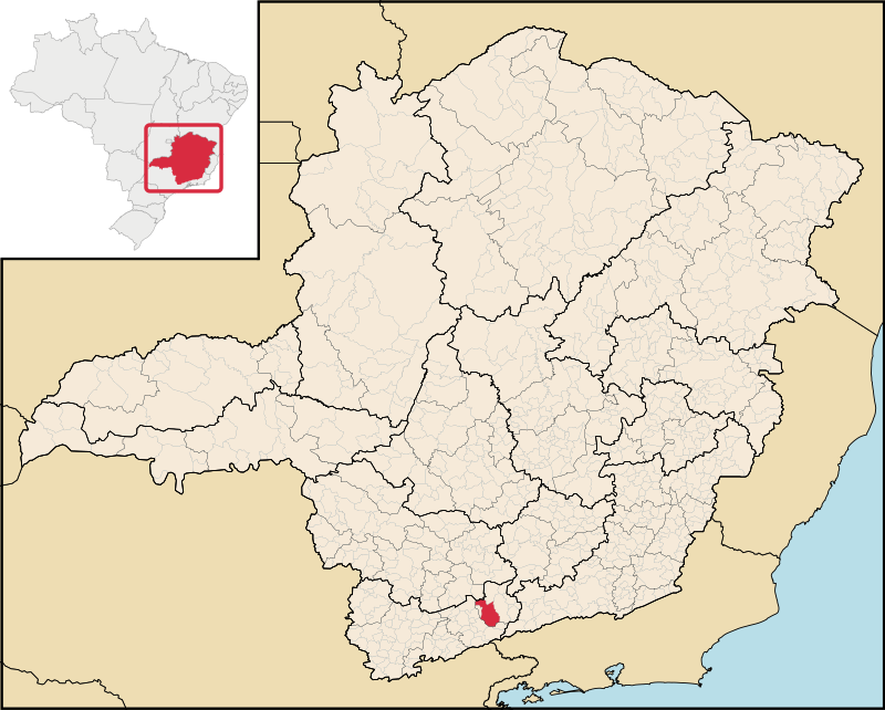O caso ocorreu em Baependi (MG), que está destacado em vermelho no mapa do estado de Minas Gerais.