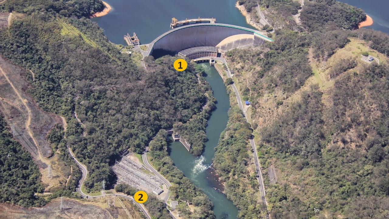 Área da Barragem do Funil. Em um 1 área da barragem e da Casa de Força. Em 2, a área de patrulha do vigia Almiro, onde o caso ocorreu.
