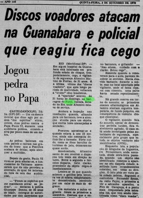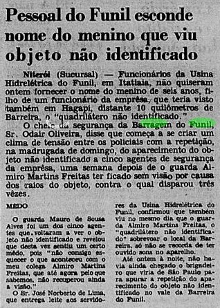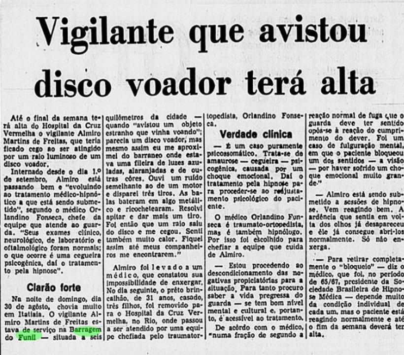 Em 30 de agosto de 1970 ocorreu um impressionante caso ufológico com efeitos fisiológicos verificados na testemunha da Barragem do Funil (RJ).